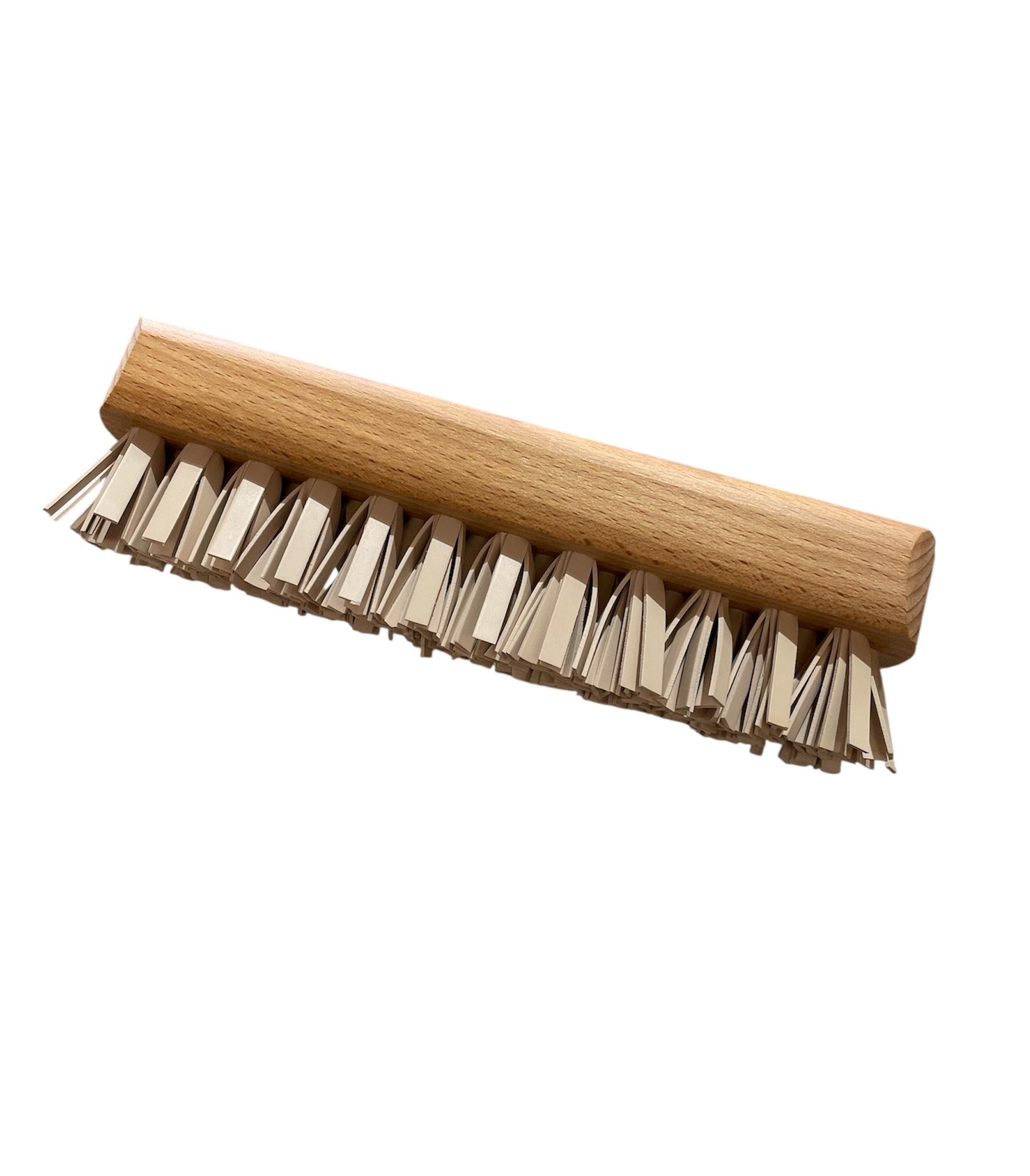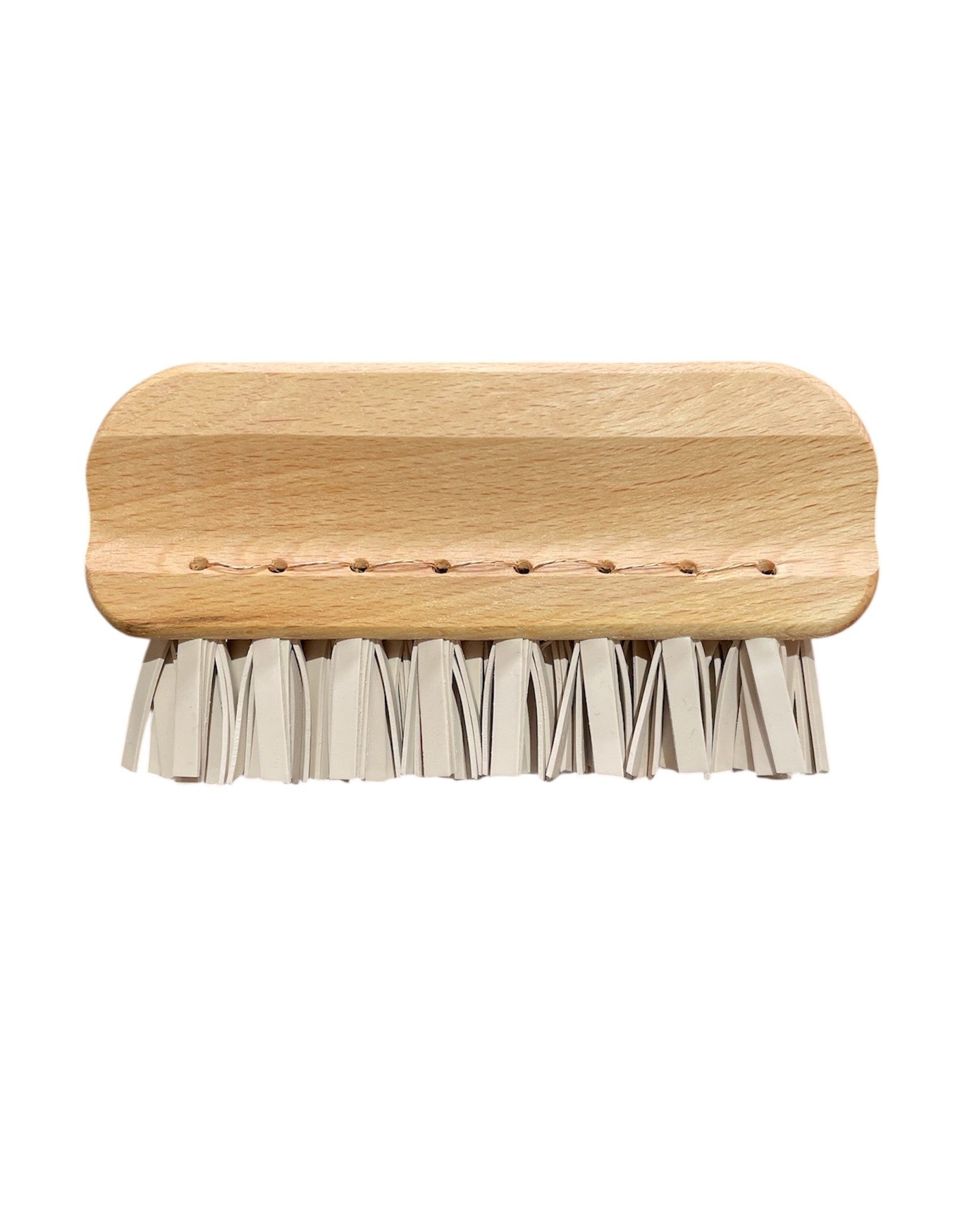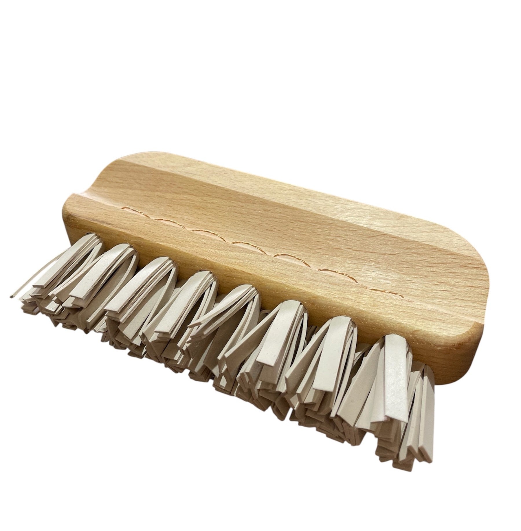 The rubber attached to the hand builds up a static charge through friction, allowing it to attract hair, lint, and dust much like a magnet. The collected particles on the surface can then be easily cleaned off by hand or rinsed away with water.