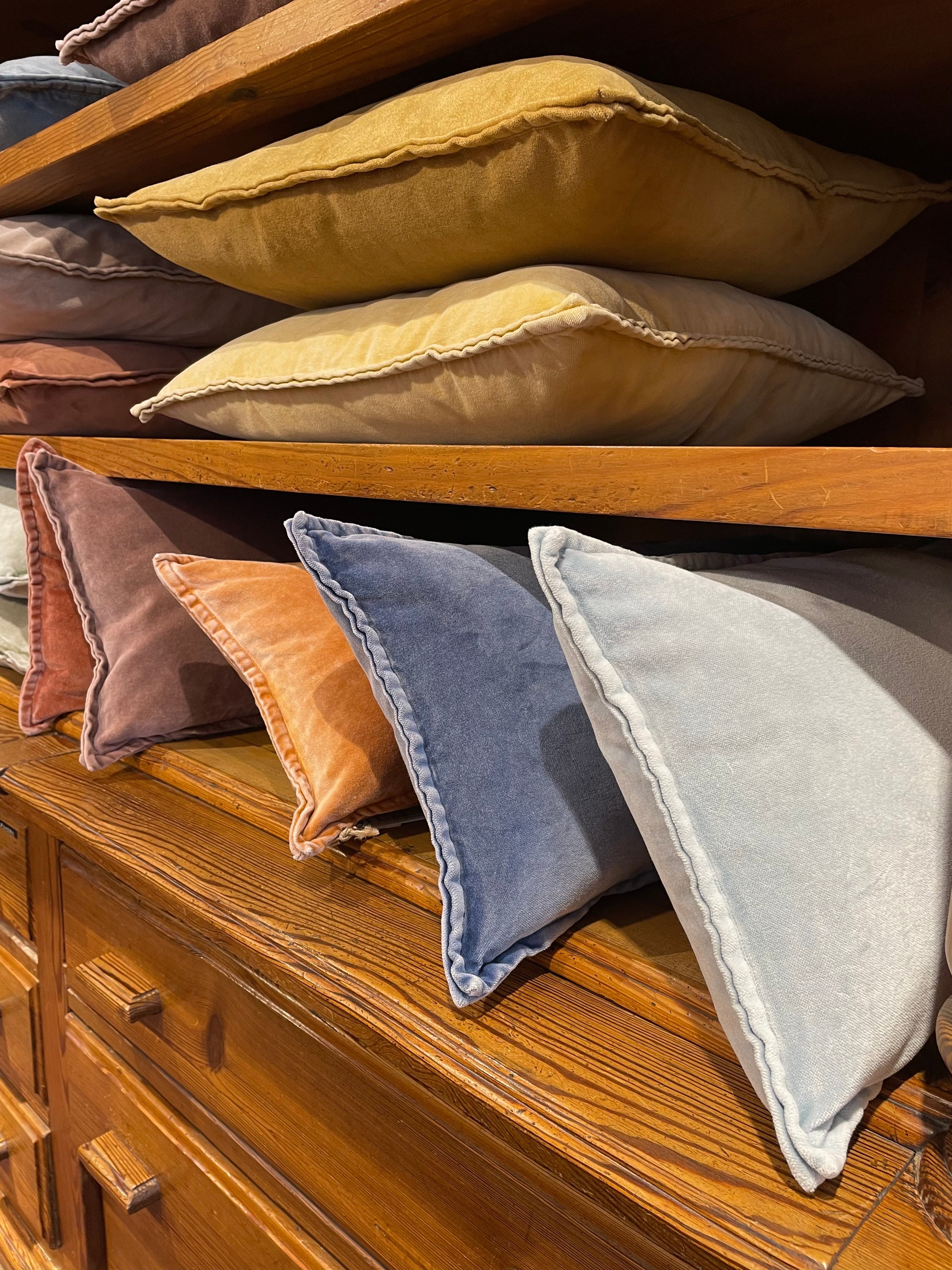 Timeless comfort meets craftsmanship in stonewashed velvet cushions. Velvet cushions are crafted from 100% cotton velvet with a refined vintage finish.